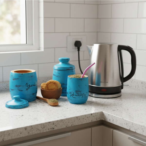 Yerbera/azucarera de madera de algarrobo.