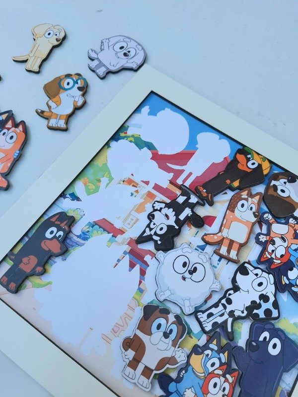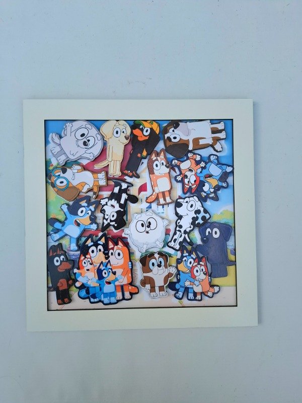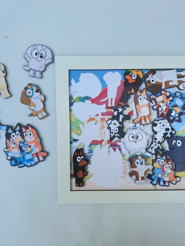 Consiste en ubicar las distintas figuras de los personajes en una base de fibrofacil a color, con las siluetas de los mismos.
